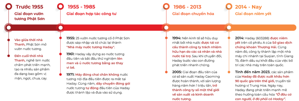 Haday là công ty gia vị lớn nhất thế giới với các sản phẩm hiện được sản xuất bao gồm nước tương, dầu hào, giấm, rượu nấu ăn, nước sốt, v.v., với giá trị sản lượng hàng năm hơn 3.4 tỷ đô la Mỹ. Mỗi giọt nước tương của chúng tôi đều được lên men tự nhiên dưới ánh nắng mặt trời, mang lại cho người tiêu dùng những món ăn thơm ngon tràn đầy hương vị.